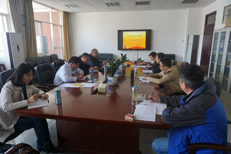 会上讨论今年学院党建工作已经拟定的五个专项工作实施方案:《外国语学院干部能力作风建设实施方案》、《外国语学院2018年文化建设方案》、《外国语学院2018年宣传思想工作方案》、《2018年外国语学院党委中心组理论学习安排》,《2018年外国语学院教职工思想教育安排》,会议原则通过以上方案,会后制定方案人再根据会上大家提的意见再做进一步的补充和完善。