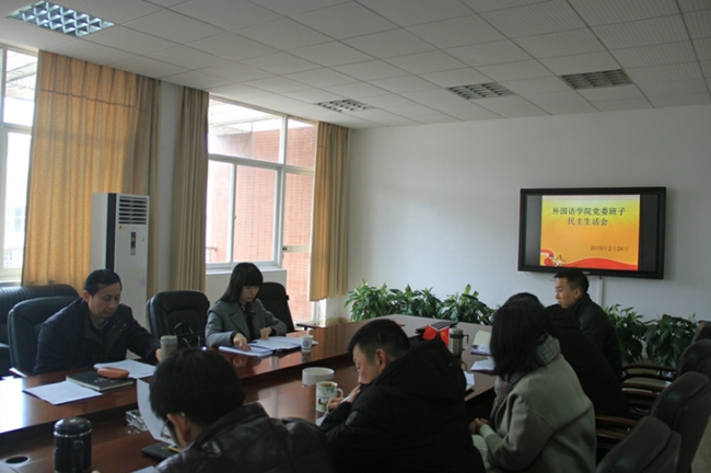 2019年2月24日下午,我院党委班子2018年度民主生活会在文科楼A603会议室举行。副校长杨伟军,组织部副部长彭霞莅临指导,会议由院党委副书记陈仁凯主持,学院党委委员及班子成员参加会议。