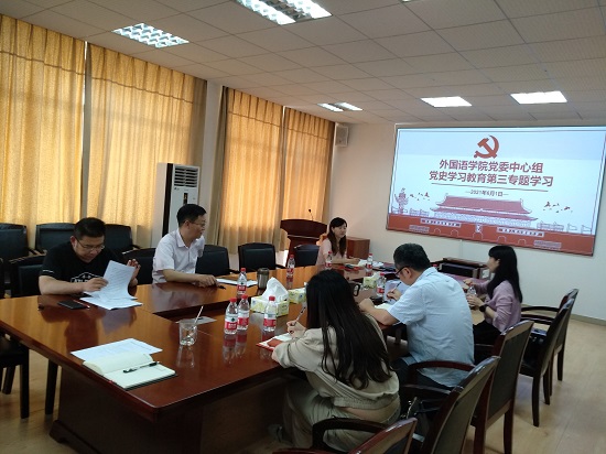6月1日下午,外国语学院党委中心组在云塘校区文科楼603会议室召开党史学习教育“学史崇德”第三次专题学习扩大会。院长段胜峰主持会议,学院党政班子全体成员、教工党支部书记参加。
