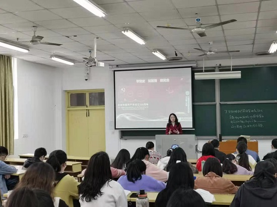 为庆祝建党一百周年,2021年6月23日,外国语言文学系党支部开展了党员深入班级、党课搬进教室的系列宣讲活动。党支部四名党员教师周雪婷、罗娟、邹辉、胡珍铭为外国语学院本科大学生讲授了以“讲党课、树理想、育情怀”为主题的系列党课。