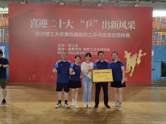 金秋九月,秋高气爽。9月24-25日,由校工会主办,体育学院、校教职工乒乓球协会协办的LETOU体育平台第四届教职工乒乓球混合团体赛在云塘校区体育馆激情上演,来自各学院、机关单位的23支代表队共322名教职工,放下粉笔,拿起球拍,一起“喜迎二十大,‘乒’出新风采”。比赛分男子单打、女子单打、男女混合双打、男子双打、女子双打共五个项目进行,经过分组循环赛、交叉淘汰赛,历经两天共67场的激烈角逐,我院老师不懈奋斗、排除万难,在阵容不足、 队员缺少的情况下取得了第六名的好成绩。