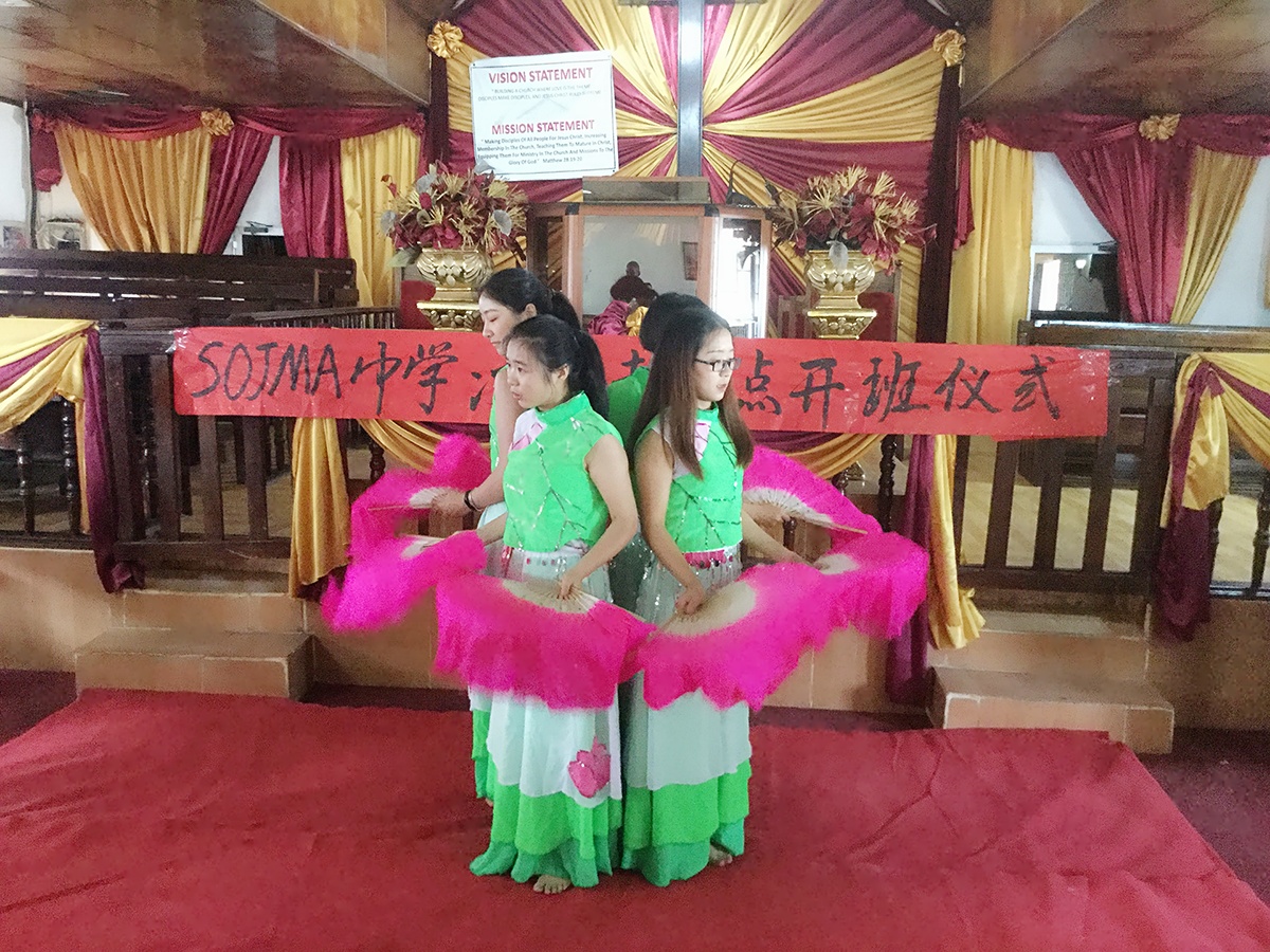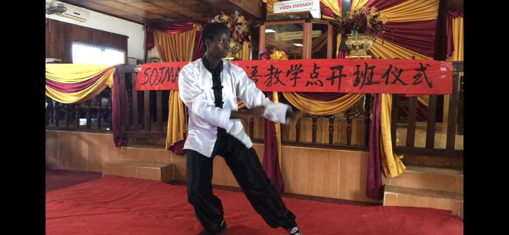 接着,SOJMA中学校长和利大孔院中外方院长共同宣告了SOJMA中学汉语教学点的正式启动。最后进行的是文艺表演。SOJMA中学学生的歌声美妙动听,孩子们的表演精彩绝伦。来自中利武术学堂学生的武术表演震撼人心,夺人眼球。利比里亚大学孔子学院中方老师所带来的《最炫民族风》舞蹈更是将中国民族舞蹈热情奔放与阴柔之美巧妙地结合在一起,带给现场观众别样的中国风采。整个活动现场掌声此起彼伏,欢呼喝彩声连绵不断。