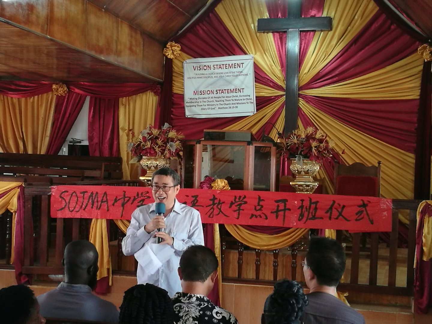 当地时间2月26日上午9点半,利比里亚大学孔子学院所属教学点SOJMA中学(Sylvanus O.Johnson Memorial Academy Elementary and Junior High School)开班典礼在该校隆重举行。出席活动的有SOJMA中学校长谢尔曼(Rev.Edwin G Sherman)等校领导、所有学生和部分学生家长、利比里亚大学孔子学院外方院长Dexter、利比里亚大学孔子学院中方院长黄柏青,以及利大孔院部分师生和中资企业代表共200多人。