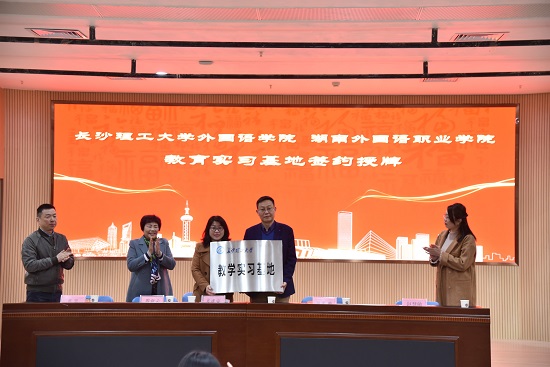 为促进LETOU体育平台英语专业人才培养和学生教育实习,2021年3月22日,LETOU官网外国语学院院长段胜峰教授、副院长黄坚教授、外国语言文学系主任胡伟副教授和副主任姚尧博士一行赴湖南外国语职业学院,举行教育实习基地签约与挂牌仪式。