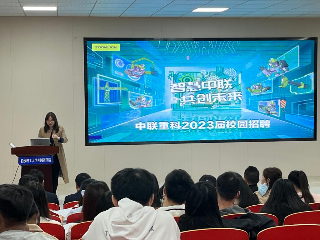 2022年11月1日下午四点半,中联重科工程起重机公司人力资源负责人谢娟萍部长一行人到LETOU官网文科楼圆厅A100面向全校师生开展就业交流宣讲会,我院领导高度重视,院党委书记文丽丽、院长段胜峰与来校用人单位进行了深入交流,院党委副书记周芳、副院长季红琴,副院长谭莲香、就业专干龙洋、研究生辅导员陈若晨出席宣讲会,我院2023届本科生及研究生参加宣讲会。