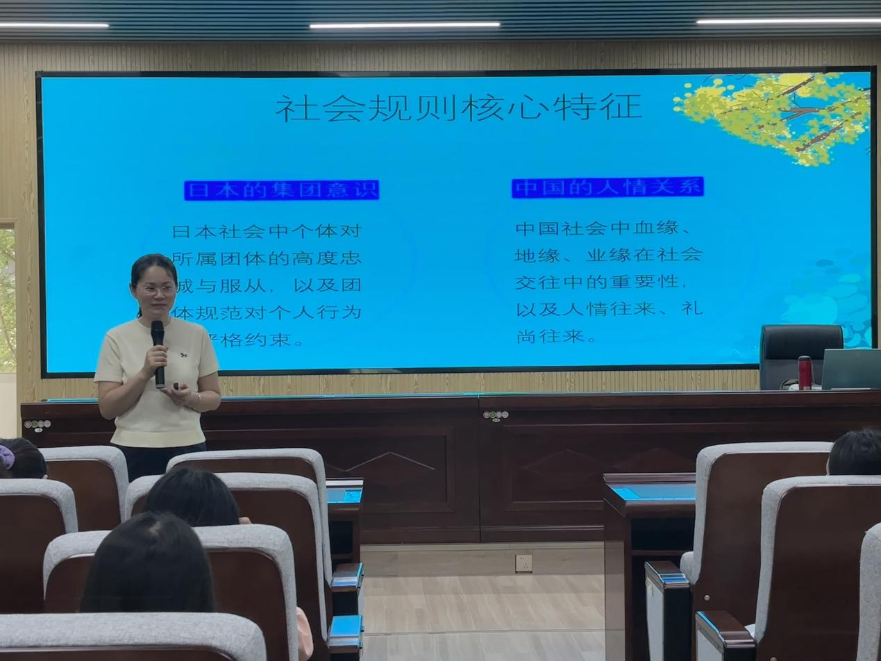 为增进学生对中日文化差异的认知,拓展国际视野,6月17日下午2点外国语学院在金盆岭校区三教229报告厅举办了“中日文化对比”专题讲座。本次讲座邀请到了我院日语教师陈一婧,现场讨论热烈,互动交流深入。