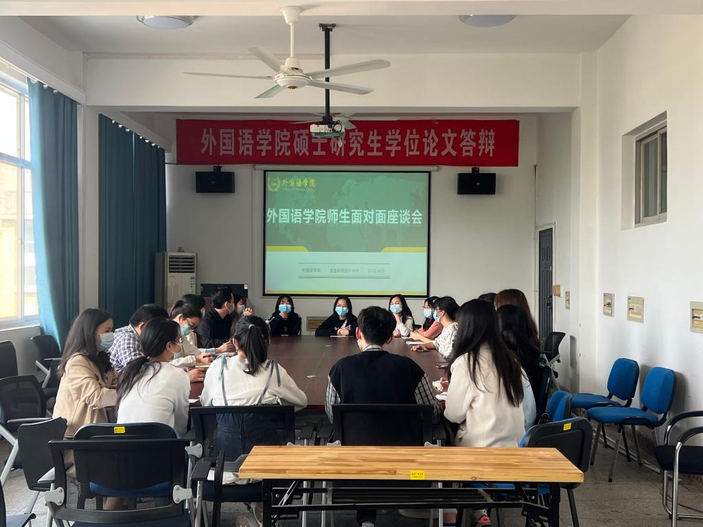 4月5日下午15时,外国语学院于金盆岭校区九号教学楼406会议室召开师生面对面座谈会,学院党委书记文丽丽、党委副书记王双、副院长武俊辉受邀出席座谈会,来自研究生各个年级及2021级本科生共17名同学参加会议,会议由辅导员陈若晨主持。