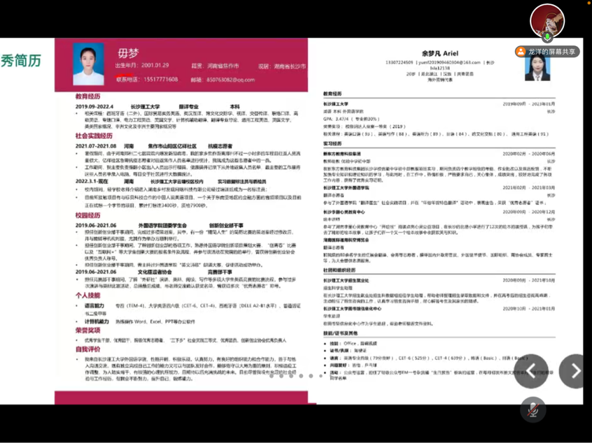 龙洋从就业信息搜索与管理的方法、求职相关事项、简历制作给学生进行了分享。她给学生分享了搜找就业信息的各类平台,也重点就“LETOU体育平台云就业平台”微信公众号的具体使用指南给学生进行了指导。她通过展示一些本年级学生的优秀简历,指导学生如何制作一份令面试官满意简历,如何捕获面试官的心。此外,她还重点分享了基层就业的形式与鼓励政策,并教授了一些面试的技巧及求职需要注意的细节。