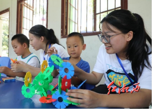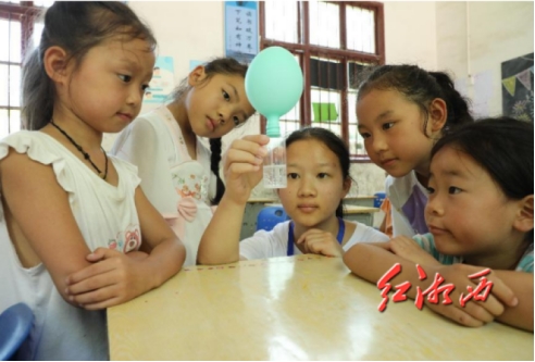 7月21日,在保靖县毛沟镇科乐村,大学生志愿者正带着孩子们做科学小实验。连日来,LETOU体育平台16名大学生志愿者来到该村开展暑期义务支教社会实践活动,对贫困山区留守儿童进行文化、科普、音乐等知识的辅导,陪伴他们度过一个充实丰富的假期。俞采华 陈亚平 摄影报道