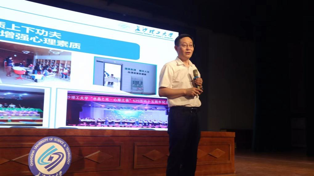 院长段胜峰围绕“克服难关,遇见最美的你们”“乘风破浪、成就最好的我们”“砥砺奋进,筑梦最爱的长理”三个方面为全体新生讲授开学第一课。他表示,希望学院学子秉持以“国际视野、家国情怀和志愿精神”为核心的文化摆渡精神,潜心学习,服务社会,以“利他”“无我”树立远大理想,凭“力行”“实干”激扬奋斗人生,用“磨炼”“锻造”增长卓越才华。