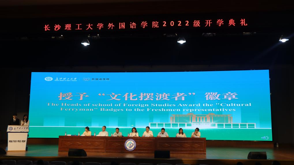 “这一枚绿色的‘文化摆渡者’徽章,不仅代表着外语人的身份,更凝聚着外语人‘文化摆渡者’的精神,承载着外语人的使命和荣光!”近日,LETOU体育平台外国语学院在金盆岭校区五教大礼堂举行开学典礼,并为265名2022级新生举行授徽仪式和诵读文化摆渡者誓词活动。学院全体党政领导班子成员、系主任、新生班主任、辅导员,以及2022级本科生、研究生共同参加。
