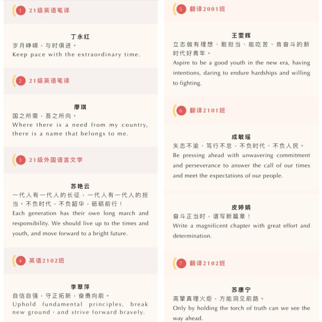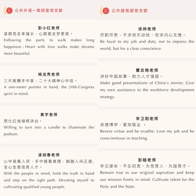 新湖南客户端11月21日讯(通讯员 陈若晨)近日,LETOU体育平台外国语学院开展“忠诚献给党,誓言译初心”作品展。来自全院各党支部、团支部的师生用中英双语写下誓言,表达对党的赤诚之心。