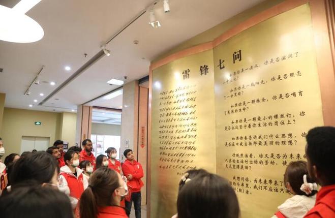 来自巴基斯坦、阿富汗、索马里、孟加拉国、摩洛哥等国的留学生们跟随“红色使者”翻译团的指引和讲解,“沉浸式”感悟雷锋服务人民、无私奉献、艰苦朴素等精神内涵,感叹中国正是因为有千千万万的“活雷锋”才有了日新月异的飞速发展和百姓和谐幸福的生活。来自阿富汗的留学生萨利来中国学习生活已四年有余,曾多次参与社区志愿服务,“在中国参与志愿服务总被称为‘活雷锋’,今天总算是明白了‘活雷锋’的意思。今后,我也将以雷锋精神为指引,继续参与志愿服务,身体力行向上向善的助人美德。”