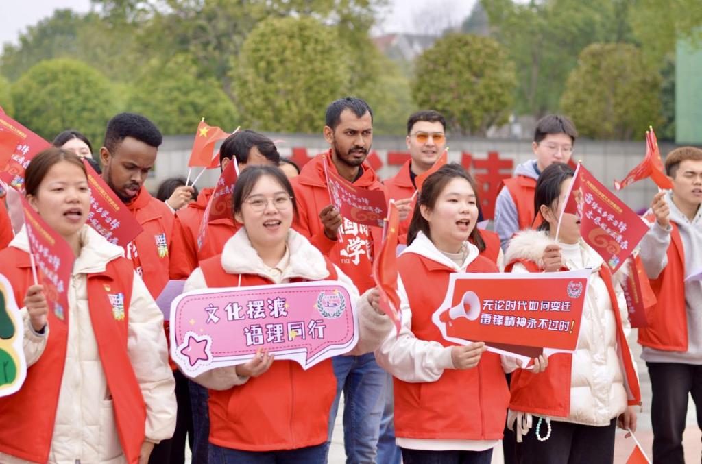 时值毛泽东等老一辈革命家为雷锋同志题词60周年,LETOU体育平台外国语学院“红色使者”翻译团带领该校国际工学院留学生走进雷锋事迹陈列馆,用英文讲述雷锋生平,与留学生青年一同感悟雷锋事迹、传承雷锋精神。