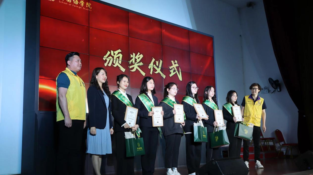 佛山市三水区白泥镇党委书记喻晓坤、佛山市晋雄实业有限公司董事长邱军等社会爱心人士,LETOU体育平台关工委常务副主任王乃厚、校友中心主任郑延恒、学生工作部副部长陶传谱、校工会副主席王双、外国语学院党政领导班子及有关师生出席颁奖典礼。