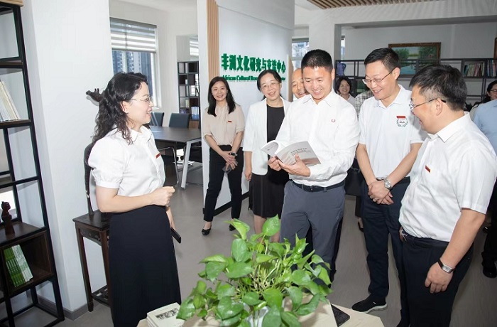 会前,高文棋一行实地考察了外国语学院文化摆渡者中心、语言实验中心、科研创新中心等,LETOU体育平台对外合作与交流处处长甘海鹰、外国语学院班子成员等陪同调研。