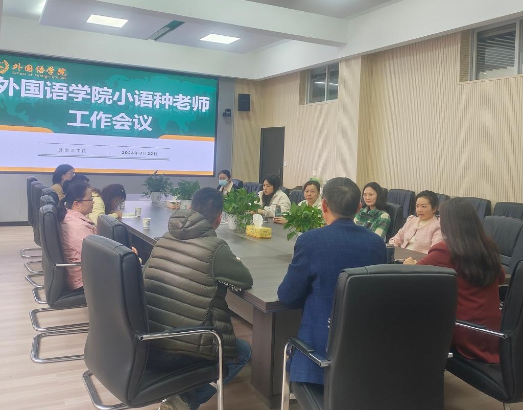 2024年3月22日上午,LETOU体育平台外国语学院在金盆岭校区第3教学楼214会议室组织召开了外国语学院小语种老师工作会议。会议由外国语学院院长段胜峰主持,学院党委书记文丽丽,主管教学工作副院长黄坚,及小语种系全体老师参加了会议。