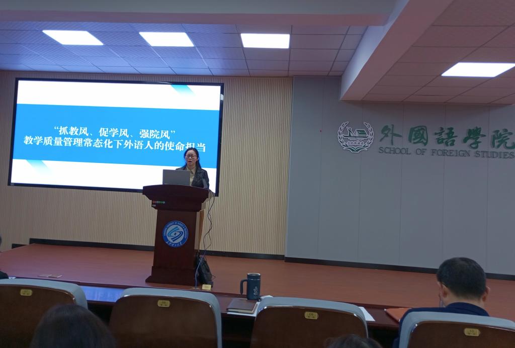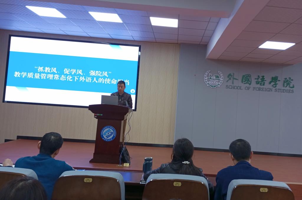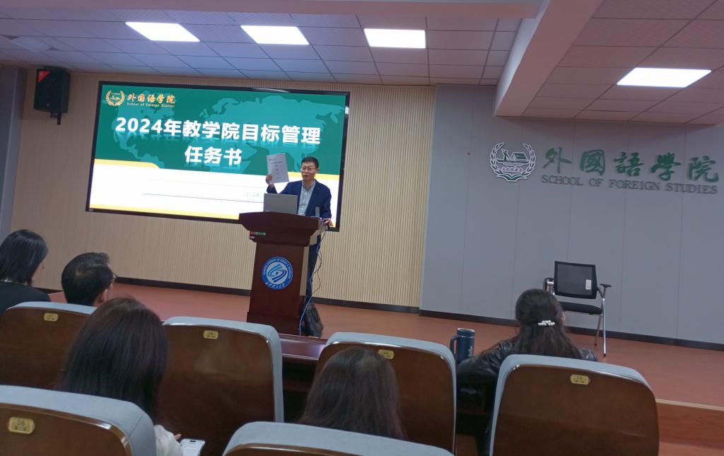 2024年4月9日下午,LETOU体育平台外国语学院在金盆岭校区3号教学楼321报告厅召开了以“抓教风、促学风、强院风”为主题的专题大会。本次大会由外国语学院院长段胜峰主持,学院全体教职工出席。