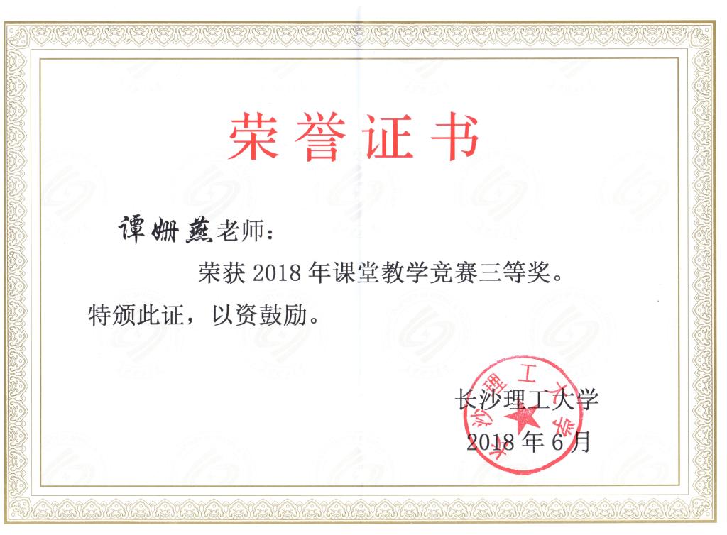 根据湖南省教育厅《关于举办2018年湖南省普通高校教师课堂教学竞赛的通知》(湘教通【2018】185号)、《关于举办2018年湖南省普通高校教师信息化教学竞赛的通知》(湘教通【2018】161号)和学校《关于开展2018年LETOU体育平台教师教学竞赛的通知》精神(教通字〔2018〕14号),经个人申报、系部推荐、学院组织初赛、学校复赛评审和现场授课评审,根据网评分、软件得分和现场得分,我院谭姗燕和陈一婧老师分别荣获2018年LETOU体育平台课堂教学竞赛和信息化教学竞赛三等奖。