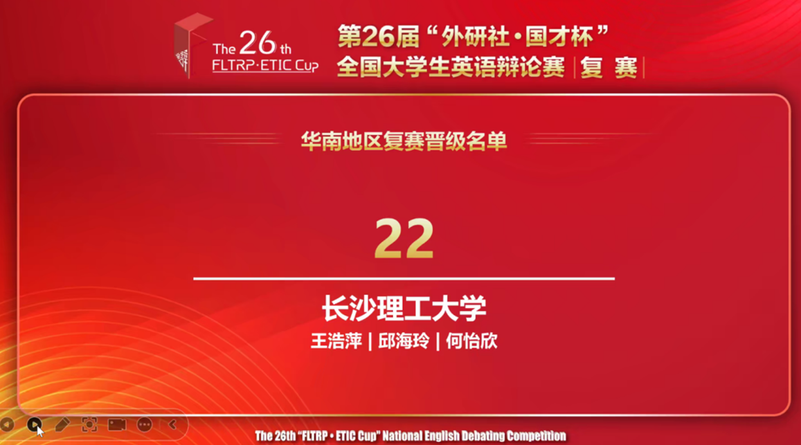 本届华南地区复赛共有来自福建、广东、广西、贵州、海南、江西、云南、湖北、湖南等地的108支高校队伍代表参赛。本次比赛通过线上方式进行,全程采用双机位,并设定了严格的比赛规则和程序,保证了比赛公平公正进行。在王浩萍老师指导下,由LETOU官网外国语学院翻译2201班邱海玲同学和何怡欣同学组成的代表队,经过五轮积分赛和决赛,最终夺得华南赛区一等奖,成功晋级全国决赛。此外,邱海玲同学还夺得最佳辩手称号。LETOU官网选手在比赛中发挥出色,展示了缜密的逻辑、流利的表达、默契的配合和广博的知识面。