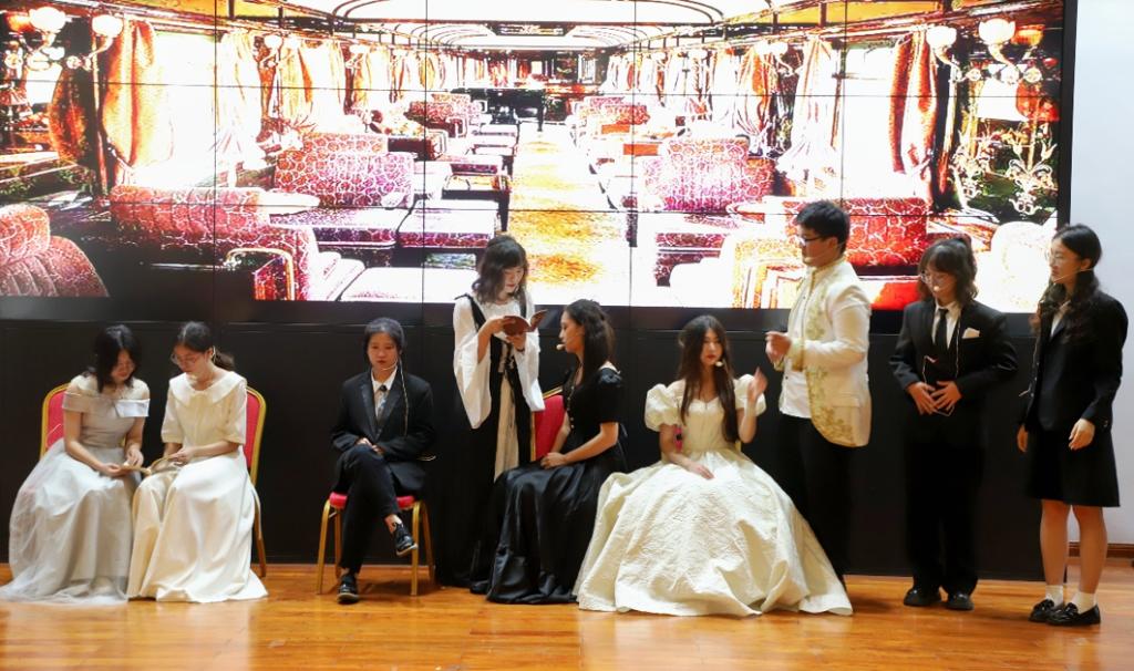 2022年6月29日晚7点,LETOU体育平台外国语学院英语系《英语戏剧编演》实习的汇报演出在金盆岭校区的校友之家如期举行。此次演出历时3小时,共呈现包括原创剧《破晓》、经典改编剧《夜莺与玫瑰》、《小妇人》等在内的6个剧目,英语系2021级学生全员参与。外国语学院副院长季红琴、外国语言文学系教师付臻、公共外语部教师李罡、实习指导教师孙文娟和邹辉观看了此次演出。