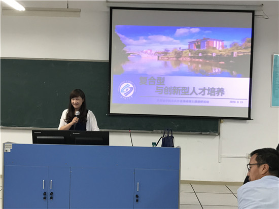 系副主任钟桂蓉引导基础部教师全面学习了教务处转发的关于复合型与创新型人才培养的相关文献,并结合基础部在人才培养方面的成果与大家展开热烈讨论,大家都深度认同:要提高复合型与创新型人才培养的实效,广大教师需要不断创新课程教学管理体系。信息化背景下,教师只有不断提升自身信息化素养,才能运用信息化技术创新日常教学管理方法和教学手段。在过去三年中,基础部大学英语教师通过不断实践和摸索,逐步完善建立学生电子学习档案、设计过程性评价自评表格等具有LETOU体育平台特色的大学英语课程教学管理体系,覆盖全校6000+学生,有效提升学生自主学习能力、团队协作能力和创新思维能力。同时,钟桂蓉老师在全国高校外语教师发展论坛进行推介后,这一套融合多种信息化手段的课程管理体系也获得越来越多的全国各地外语教师的关注和咨询。