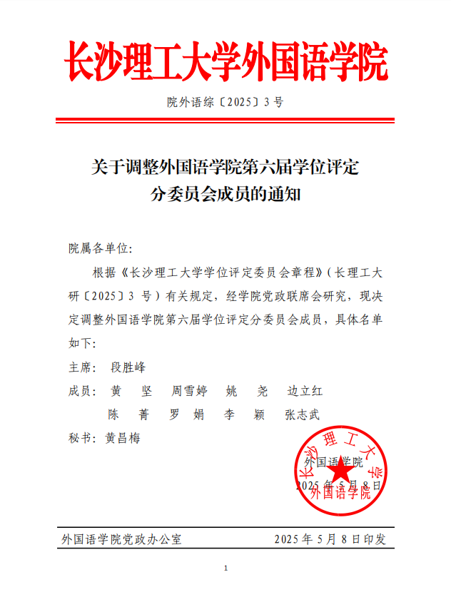 关于调整外国语学院第六届学位评定分委员会的通知