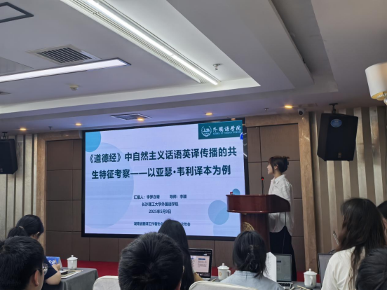 我院翻译专业研究生李罗亦青、潘越、谭静、李燕妮等同学在青年英才论坛及专题分组研讨等环节踊跃发言。她们结合自身的学习和研究经历,分享了主题为“《道德经》中自然主义话语英译传播的共生特征考察”与“现象学意向性理论视域下翻译动态性研究”等学术论文,展示了我院学子的科研能力和风采,得到了与会专家的肯定。