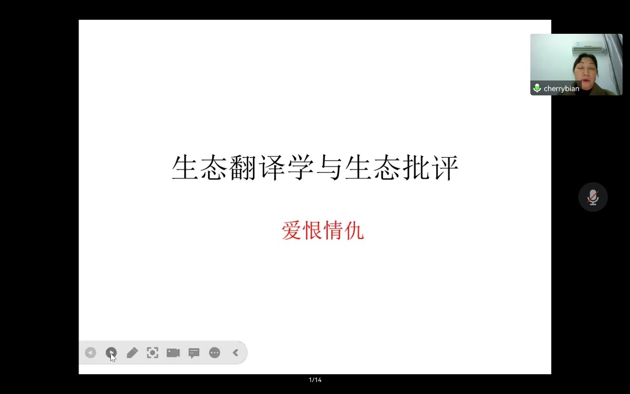 2022年12月14日晚,我院边立红副教授应邀为LETOU官网第十八届博力学术论坛“翻译生态与生态翻译”专题论坛做了题为“谈谈翻译的自然维度”的讲座。外国语学院部分导师及全体研究生参加了本次讲座。