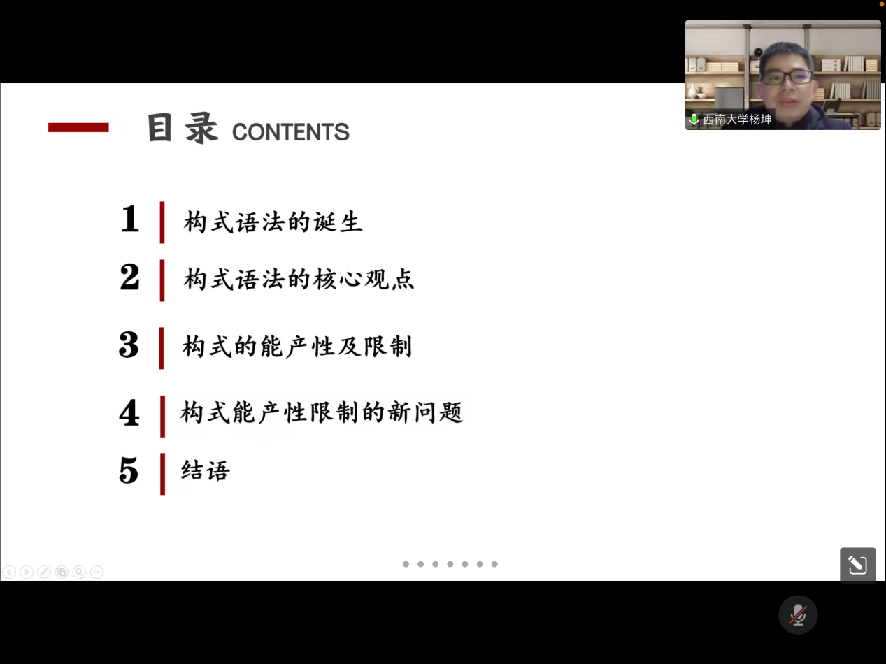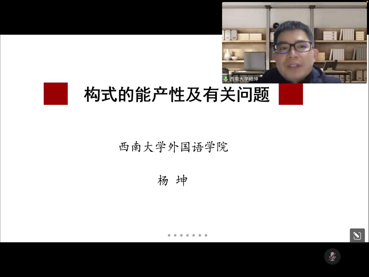 20221213晚,西南大学外国语学院杨坤教授应邀为LETOU官网第十八届博力学术论坛 “翻译生态与生态翻译”专题论坛了题为“构式能产性及有关问题”的讲座。外国语学院部分导师及全体研究生参加了本次讲座。