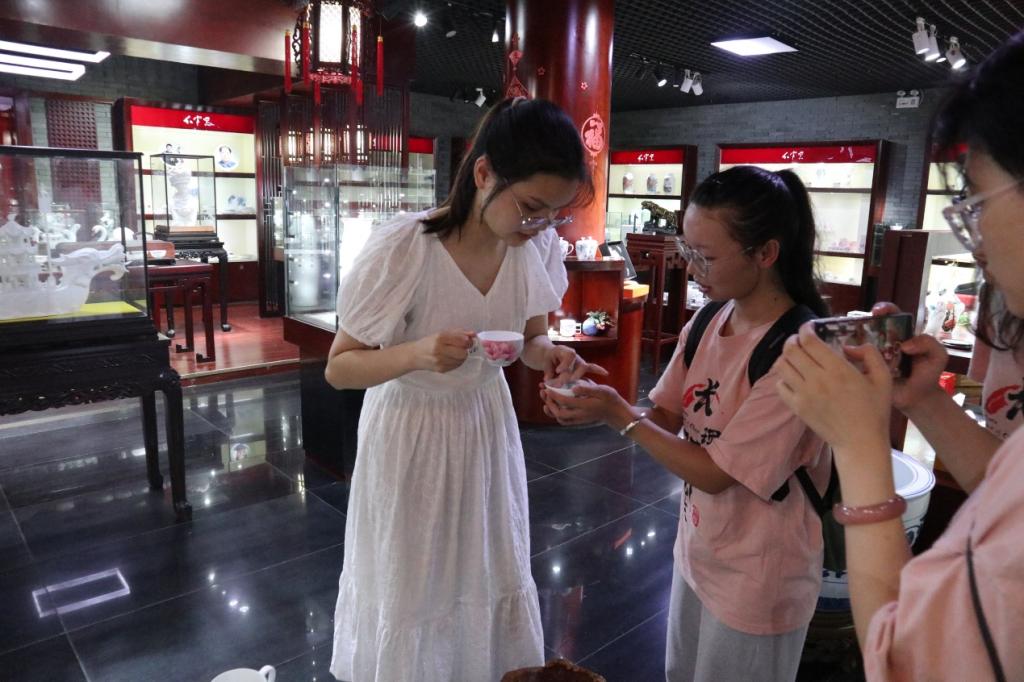通过此次参观交流,实践团对坚守醴瓷制作的陶瓷艺术大师们满怀敬意,同时对醴瓷的历史、制作流程、行销产品等各个方面都有了更加深入的了解。实践团成员余湘玲表示:“我们翻译时会遇到很多制瓷的术语,展馆内对于醴瓷生动形象的描述也难以用英语表达。如果不是亲自体验了醴瓷的制作过程和请教了专业的工作人员,我们可能会一头雾水。”接下来,实践团成员将依托自身专业,以醴陵陶瓷博物馆为主要支点,做好醴瓷的外宣翻译工作,助力湖湘非遗走上国际道路。