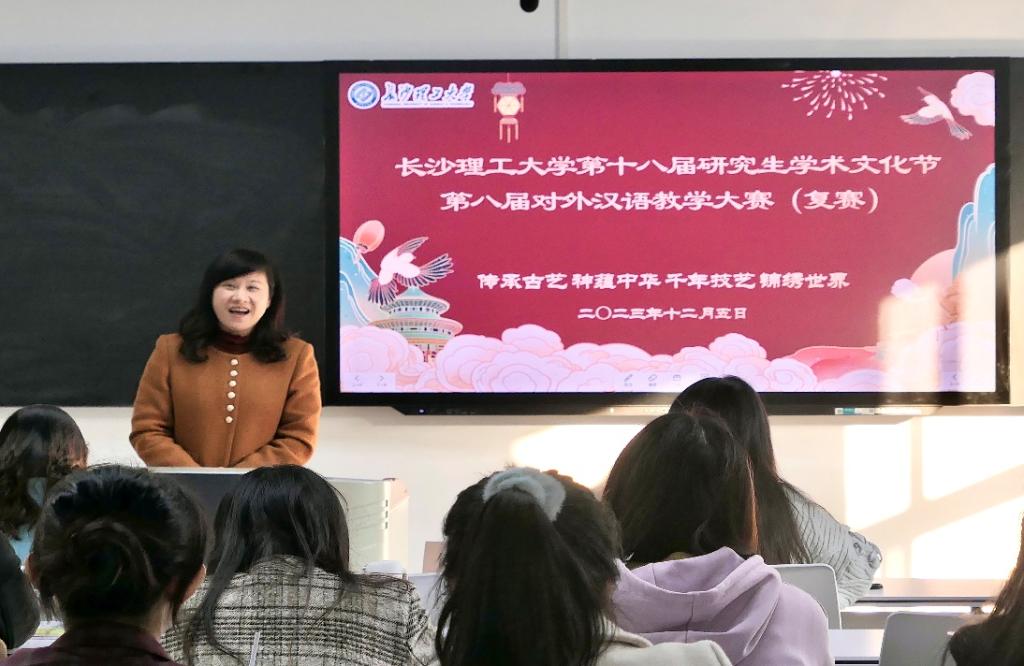 秉着“让汉语走向世界,让世界了解中国”的初心使命,提升同学们的文化素养,坚定文化自信,传承交流中华优秀文化,同时为孔子学院储备外派志愿者教师,LETOU体育平台外国语学院承办了第十八届研究生学术文化节暨第八届对外汉语教学大赛。大赛复赛于12月5日下午2点在3教611进行,特邀钟桂蓉老师、孙文娟老师、龙洋老师担任评委。经过初赛的激烈角逐,共有十二名选手进入复赛。