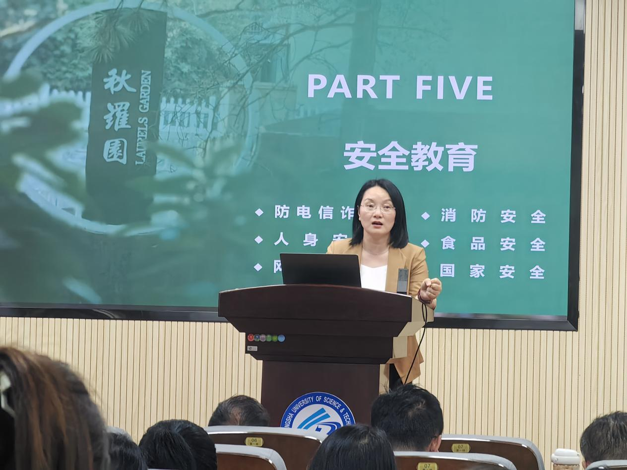 外国语学院党委副书记周芳对研究生日常管理与安全教育重点工作进行了全面部署。她指出,要加强课堂纪律和考风考纪管理,做到强学风、树新风;同时,研究生导师要落实“导师第一责任”制度,严格审批学生请假及外宿情况,组织学生学习工作室安全制度,积极建设“最美工作室”;研究生须重视各类安全问题,如财产安全、人身安全、网络安全、食品安全、国家安全、消防安全等。