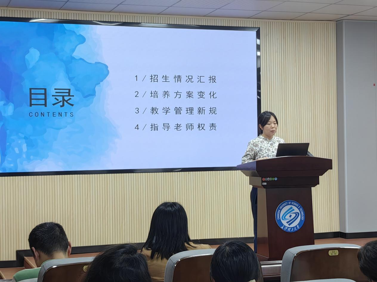 为了加强研究生导师对未来研究生教育规划的了解,外国语学院副院长姚尧从四个方面对研究生教育计划的调整作出了详细阐释。首先是招生办法,研究生复试大纲进行了调整,将不再区分研究方向;其次是培养方案,新方案扩大了学生的课程选择权,开设课程总学分与所需学分的比例调整至2:1;再者是教学管理,任课教师在调课、考试等方面都需严格按照新规进行;最后是导师权责,导师是研究生培养第一责任人,对研究生思想品德、科学伦理应起到示范和教育作用。