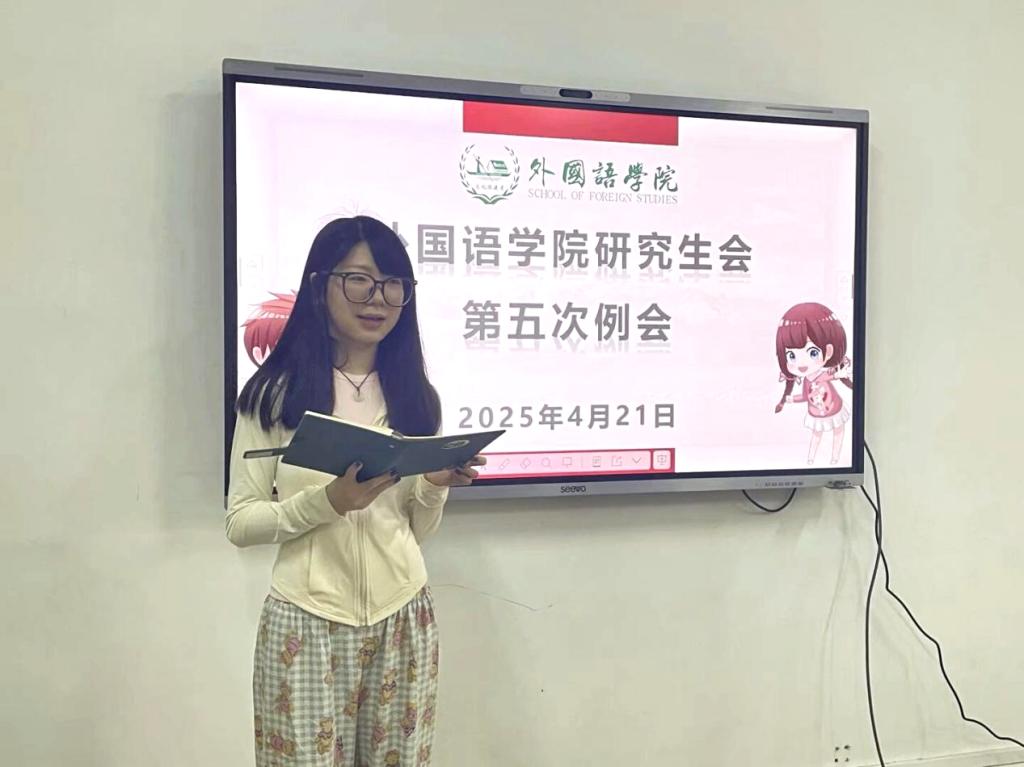 为保证第二十届研究生学术文化节暨第四届中华廉洁文化校园翻译大赛决赛顺利举行,4月21日下午,我院研究生会于3教研会活动室220举办第五次全体例会暨第四届中华廉洁文化校园翻译大赛决赛筹备会。会议由王汉宾、彭伊帆、龙晴云共同主持,院研会全体成员参与。