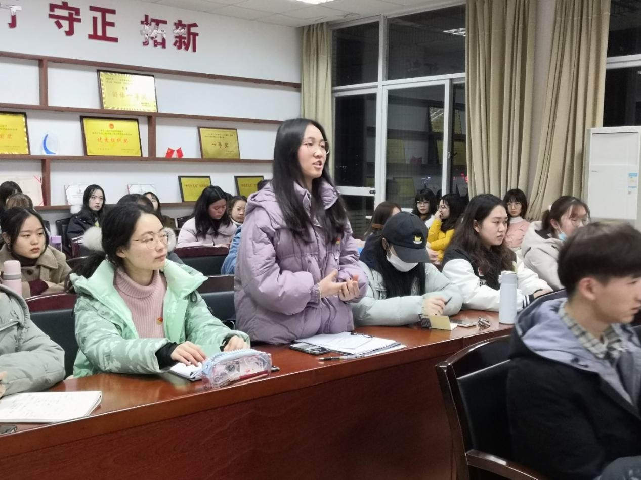 2021年3月8日晚七点半,外国语学院本科生党支部在文科楼A603开展主题党日活动,专职组织员汪功伟出席会议,外国语学院本科生党支部全体成员和部分优秀积极分子参加。