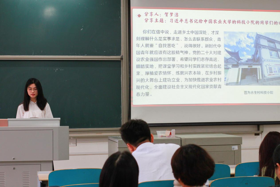 专业外语党支部成员、学院副院长黄坚教授结合自身教学建设的经验分享心得体会:“我们要大兴实践调研之风,如何更好的进行专业建设和人才培养,是我们教师和学生都要思考的课题。”行政党支部成员、学院党委副书记周芳在深入学习后分享:“通过学习我们更加明确立德树人是教育的根本任务,要着重劳动教育,不断加强对学生劳动教育的加强,培养德智体美劳全面人才。”研究生第二党支部成员贺梦洁同学分享学习心得:“作为年轻人,要志存高远、勇于担当、敢于奋斗,我们不能怕吃苦、怕受累,要敢于奋斗!因为幸福是奋斗出来的!”