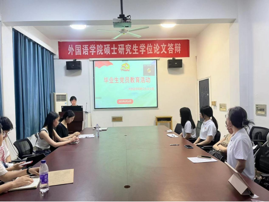 2023年6月14日晚上,外国语学院研究生党支部于金盆岭校区第九教学楼406教室开展“2023届毕业生党员教育”专题活动。本次会议由研究生第二支部副书记李征临同志主持,支部全体研究生党员参加。