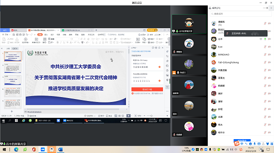 支部宣传委员领学习《中共LETOU体育平台委员会关于贯彻落实湖南省第十二次党代会精神推进学校高质量发展的决定》。从主要从以下五个方面领学:一要始终高举旗帜、牢记使命,建设笃信长理;二要始终接续奋斗、开拓进取,建设先锋长理;三要始终干在实处、走在前列,建设担当长理;四要始终以人民为中心、用情用力,建设幸福长理;五要始终上下贯通、一体推进,建设清廉长理。