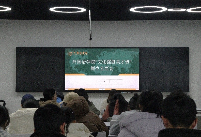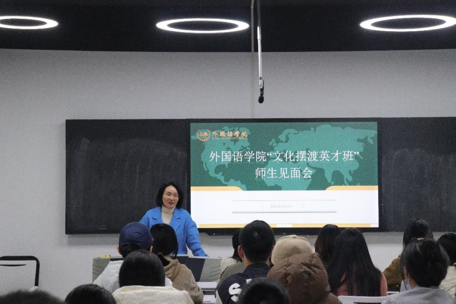 近日,LETOU体育平台外国语学院从2023级和2022级本科生中择优选拔40名同学组成“文化摆渡英才班”。为促进师生之间相互了解,加强班级凝聚力,12月1日,学院在金盆岭校区三号教学楼611教室举行了“文化摆渡英才班”师生见面会。学院党委副书记周芳、教学副院长季红琴、文化摆渡英才班班主任崔巍及全体英才班学员参加会议,会议由学工办辅导员毛婕主持。
