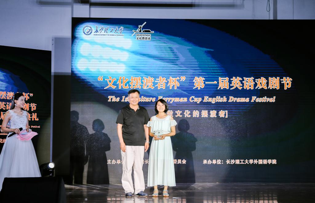 中国国际商会湖南商会国际联络部副部长谭洁和外国语学院副院长周雪婷、副院长黄月华、院长助理黄坚应邀担任大赛评委。经过两个小时的激烈角逐,英语1401班的《停》以其深刻的主题和精湛的演技获得金奖,英语1602班朱若辰(饰演《鸿门宴》剧中刘邦)获得“最佳男演员”,英语1401班杨贵岚(饰演《停》剧中Dan的母亲)获得“最佳女演员”,利比里亚留学生Victor Wulu获得“国际友谊奖”。谈传生、付嫦娥等领导为获奖作品和演员颁奖。