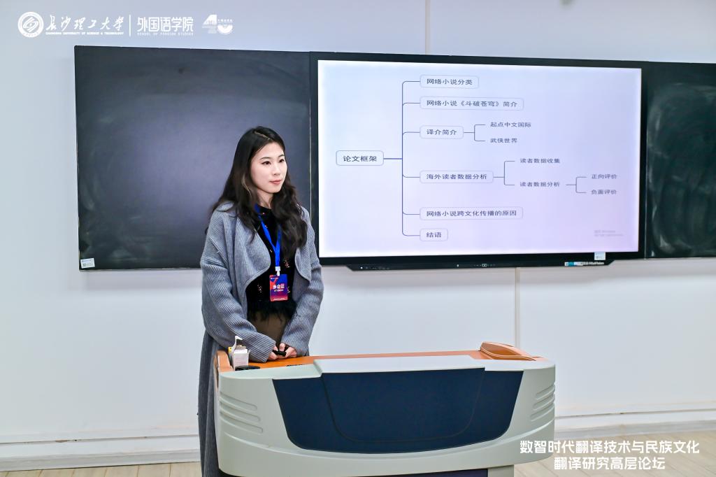 湖南科技大学的禹玲教授在分论坛上宣讲了题为《湖南〈大公报〉特征文学翻译研究》的学术研究,通过对民国时期湖南《大公报》的翻译文学特征进行分析,探讨了湖南本土报纸中外国文学汉译的特点及其影响。LETOU体育平台的刘思利从传播学5W视角出发,研究了湖湘花鼓戏外宣翻译策略与传播途径,为推动中国传统文化“走出去”提供了新的视角。同样来自LETOU体育平台的陈慧则聚焦湘西地区珍贵的非物质文化遗产,以纽马克翻译理论为指引,为非遗的国际传播开辟新路径。此外,北京外国语大学的胡昕以人工智能译文为切入点,对湘赣花炮文化的接受度展开全面分析,为花炮文化的传承与传播提供新视角。