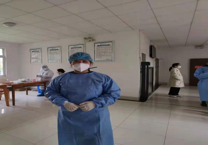 41日、45日,易珏虹、李满艳在电苑楼、西门传达室协助开展核酸检测工作