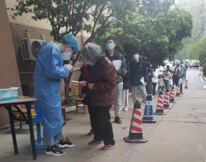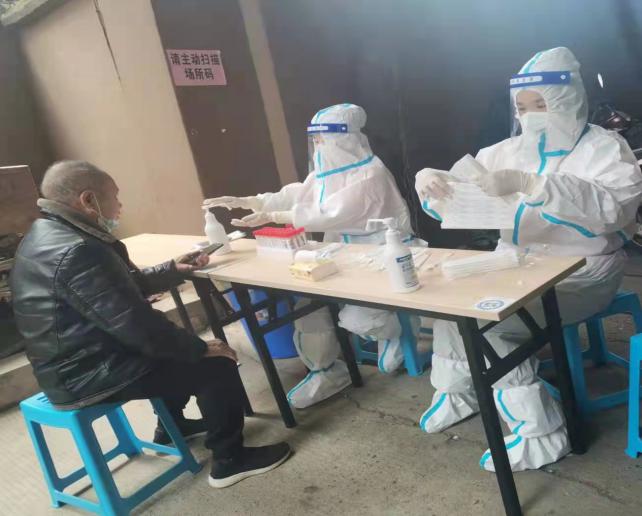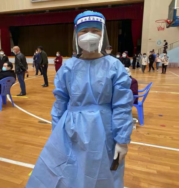 42日,许建兰在云塘校区学生宿舍协助开展核酸检测工作