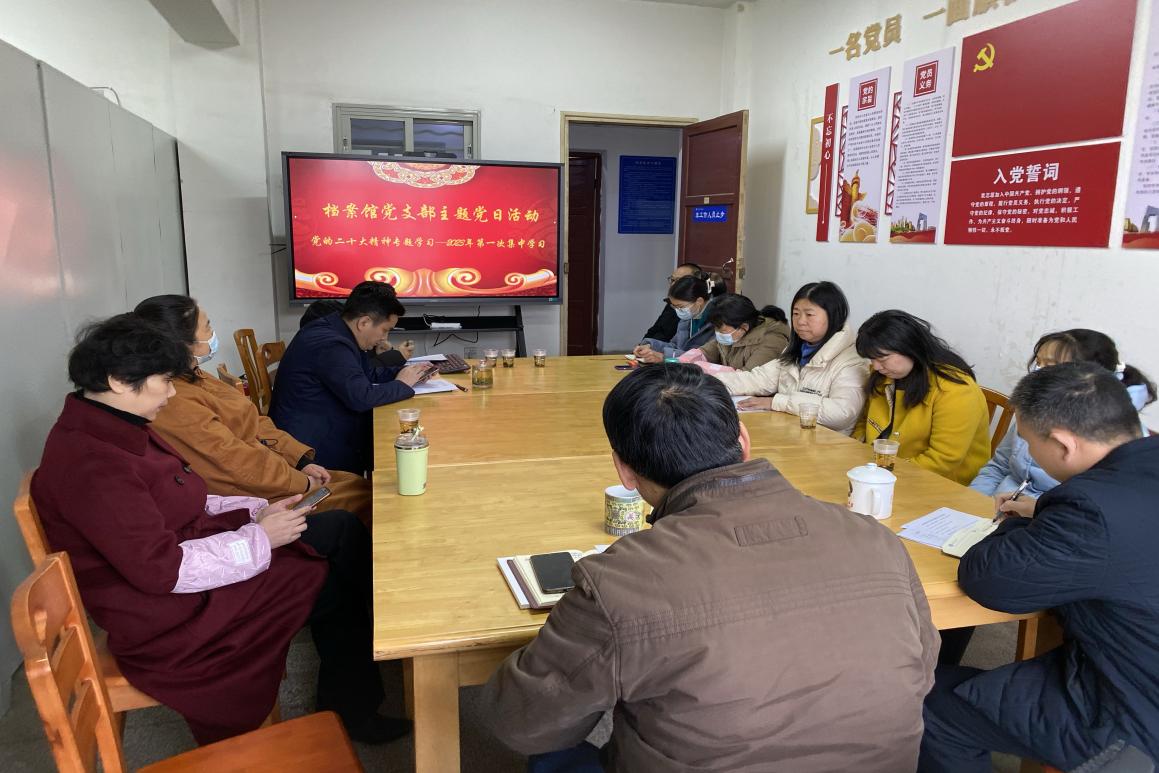 支部书记刘安生强调,今年是全面贯彻落实党的二十大精神开局之年,做好档案工作具有重要意义,要把深入学习贯彻党的二十大精神作为当前和今后一个时期首要政治任务,要坚持原原本本学、融会贯通学、结合实际学,要坚持学以致用,切实将学习成效转换为工作实效,推动党的二十大精神在档案馆落地生根、开花结果。