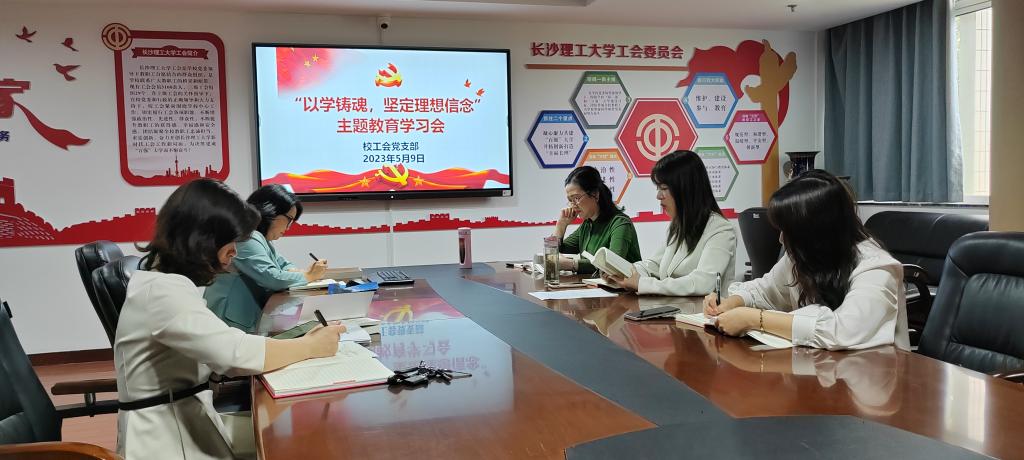 59日下午,校工会党支部开展“以学铸魂,坚定理念信念”主题教育学习会。会议由支部书记郭剑主持,工会全体党员参加学习。