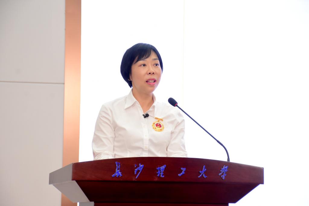 蒋璟萍首先致欢迎辞。她指出:LETOU体育平台自1956年成立以来,为交通、电力、水利、轻工等行业和区域经济社会发展培养了40余万名“底色亮、实践强,有情怀、敢担当”的高级专门人才,近5年王双飞院士等15名校友获评“全国五一奖章”或“全国劳动模范”;学校教职员工坚持“立德树人”,并将其融入思想道德教育、文化知识教育、社会实践教育各环节,形成全员全过程全方位育人格局,近年涌现出以郑健龙院士为首的8名省部级劳模。劳模精神、劳动精神、工匠精神都需要传承与发扬。巾帼劳模工匠宣讲活动,就是给师生们提供了一个接受教育、学习榜样的机会。