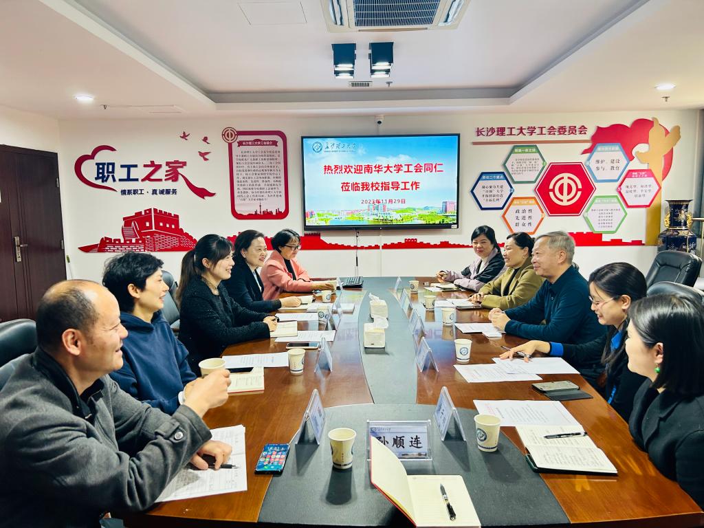 11月29日,南华大学工会常务副主席潘本衡、副主席曾艳等一行5人来LETOU官网交流调研,LETOU官网工会常务副主席郭剑、副主席赵爱群及工会职能科室人员参加交流。