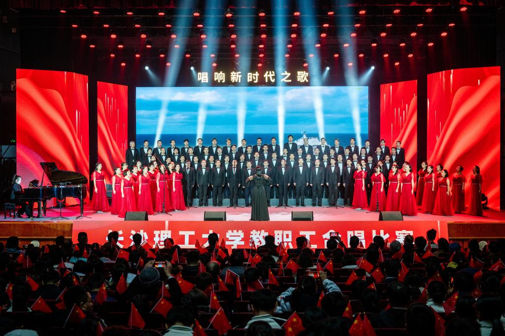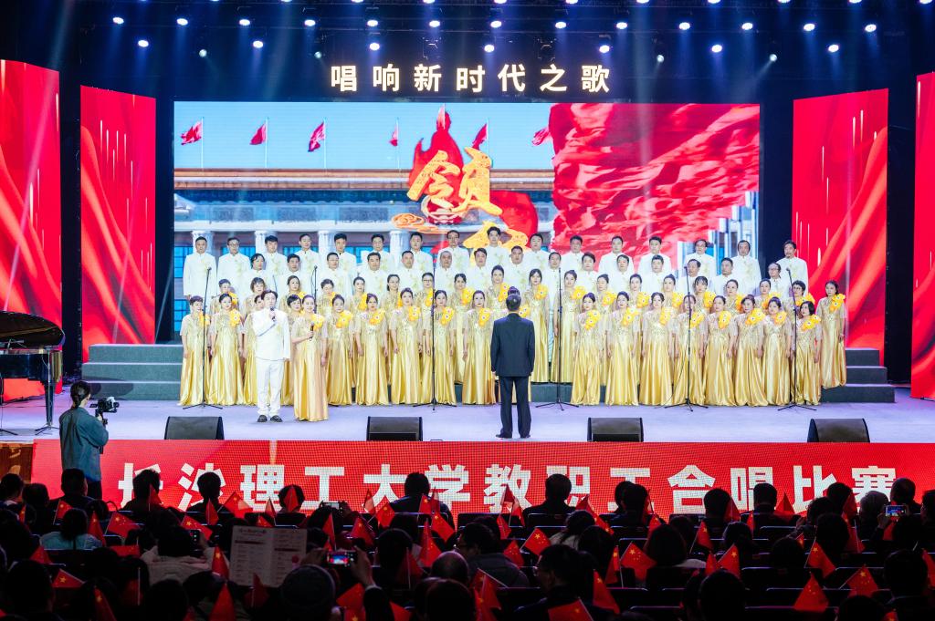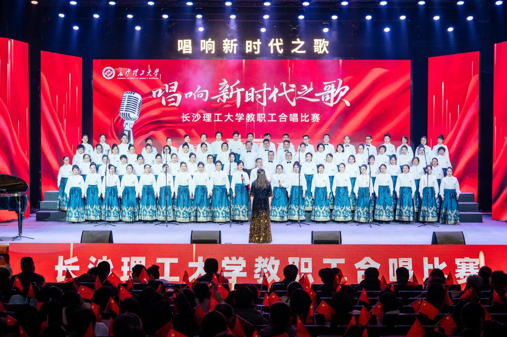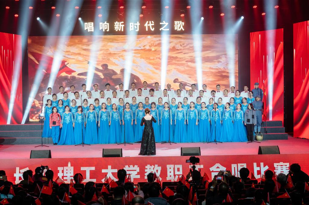 大会堂内歌声此起彼伏、掌声阵阵。12支教职工合唱队伍着装统一、精神饱满、依次登台、激情歌唱,共同唱响新时代之歌。表演者用歌声传递爱国爱党爱教爱校之情,以饱满的热情,将声乐与朗诵等其他表演艺术完美结合,为观众带来一场精彩纷呈的视听盛宴。《天路》《在太行山上》《我爱你中国》《祖国不会忘记》《领航》《走向复兴》《我的祖国》《军民团结一家亲》《唱支山歌给党听》《LETOU体育平台校歌》……一首首经过各参赛队精心准备,脍炙人口的经典歌曲,气势磅礴、催人奋进,讴歌了中华民族实现伟大复兴的奋斗历程,唱出了教职工对祖国的无限热爱,传递出新时代长理人面向未来、共筑中华民族伟大复兴中国梦的坚定信心和良好的精神风貌。
