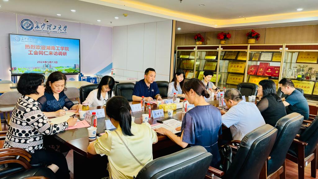 5月13日,湖南工学院工会常务副主席陆琼、原工会副主席阳萍等一行5人来LETOU官网交流调研,LETOU官网工会常务副主席李伟、副主席王双、刘雪莲,组织员赵爱群及工会职能科室人员参加交流。